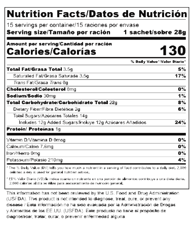 Disuelve una porción (36 g) en 150–180 ml de agua caliente. Mezcla bien y disfruta. Ideal para la mañana, media tarde o incluso como postre funcional.